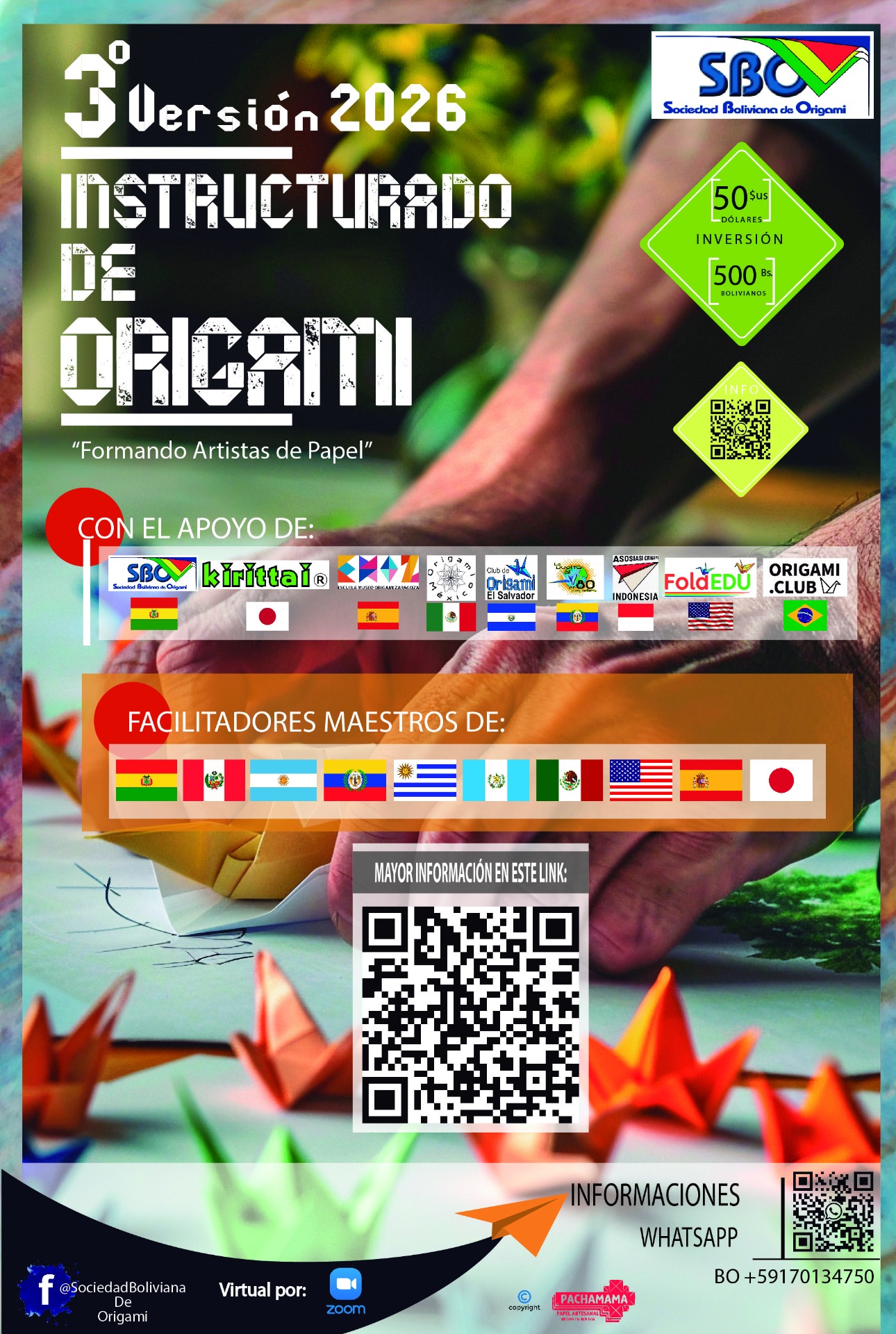 Organizado por la Sociedad Boliviana de Origami (S.B.O.), el Instructurado se consolida como una propuesta académica y cultural de alto nivel, orientada a la profesionalización, actualización y fortalecimiento del origami en la región.